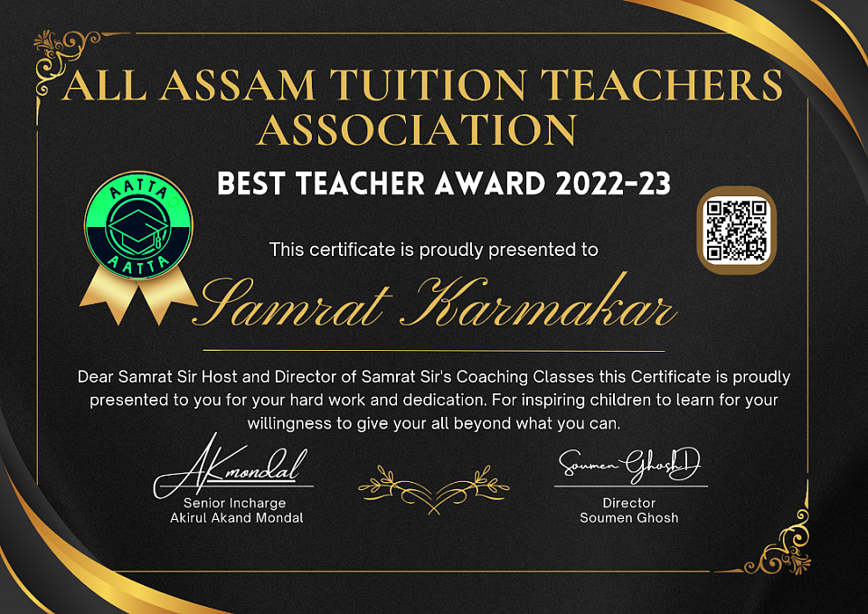 Extremely humbled to receive the Best Teacher Award from the All Assam Tuition Teachers Association. While my name is on the trophy, this award truly belongs to my hardworking students who inspire me to be a better educator every single day. Thank you, AATTA, for this incredible honor!